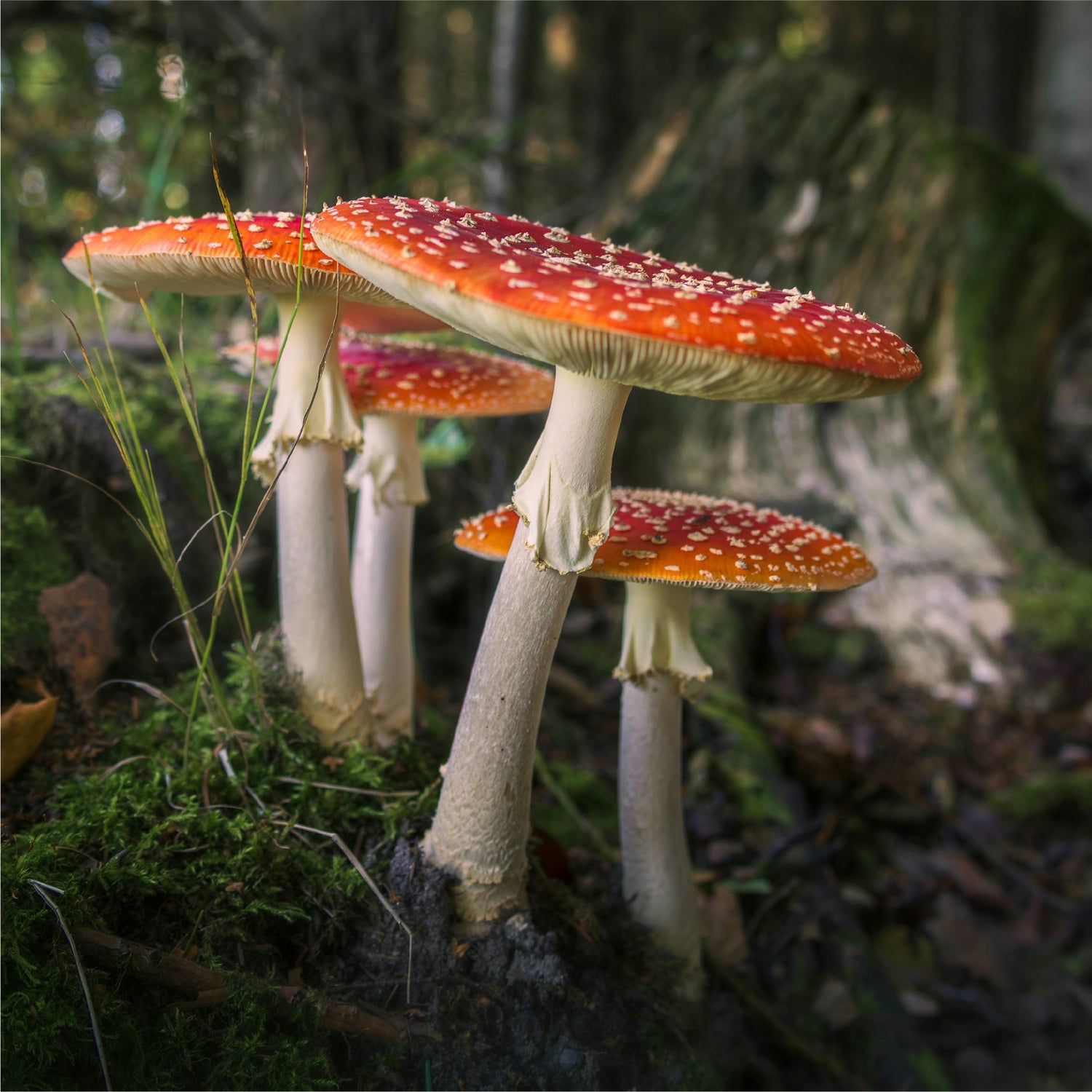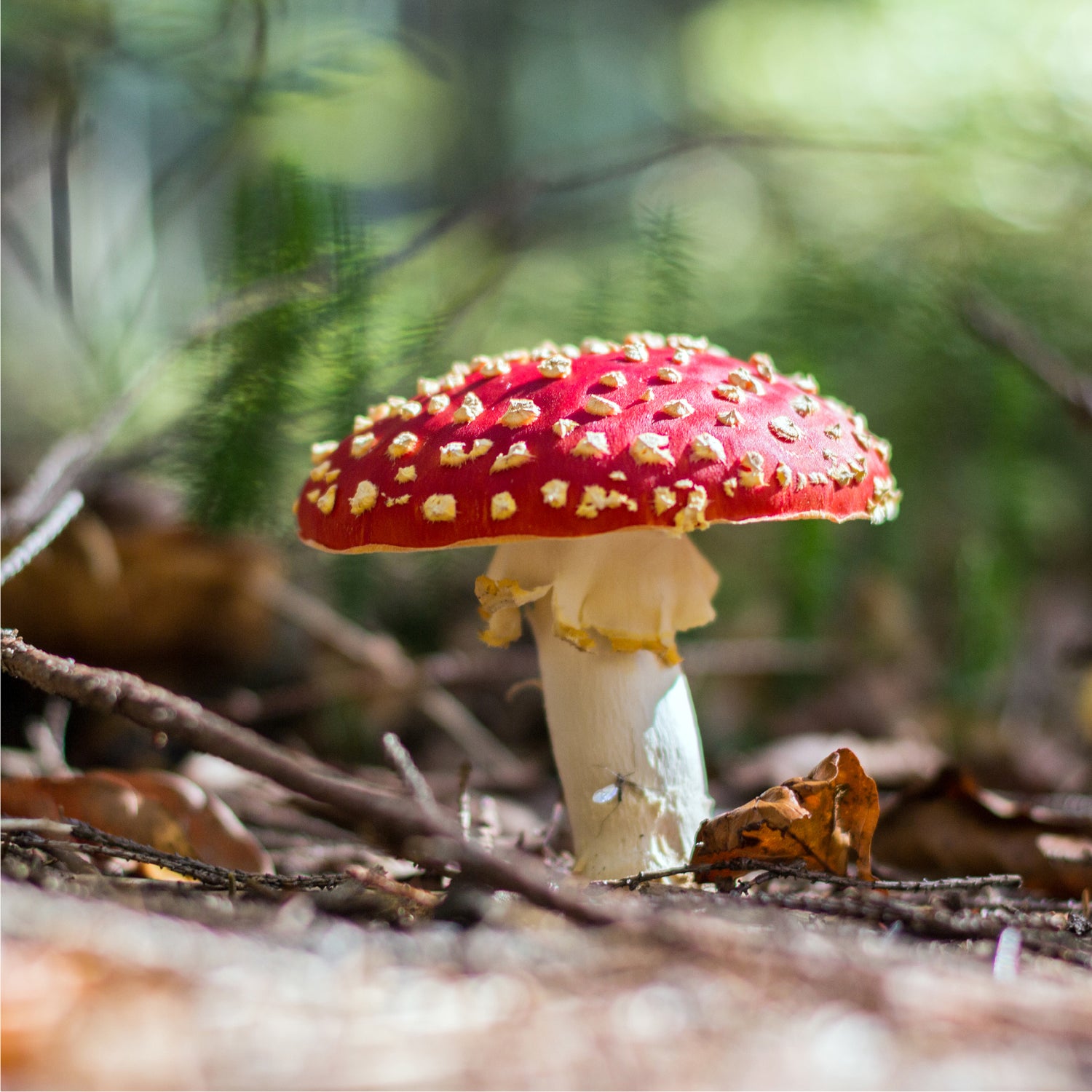 The iconic mushroom from Alice in Wonderland, commonly known as the fly agaric, is a visually striking mushroom with its iconic red cap and white spots. Found throughout the Northern Hemisphere, it has a long history in various cultural and spiritual practices, particularly in Siberian and Northern European folklore. Unlike many other medicinal mushrooms, Amanita Muscaria contains unique psychoactive compounds, including muscimol and ibotenic acid, which have distinct effects on the central nervous system (1).